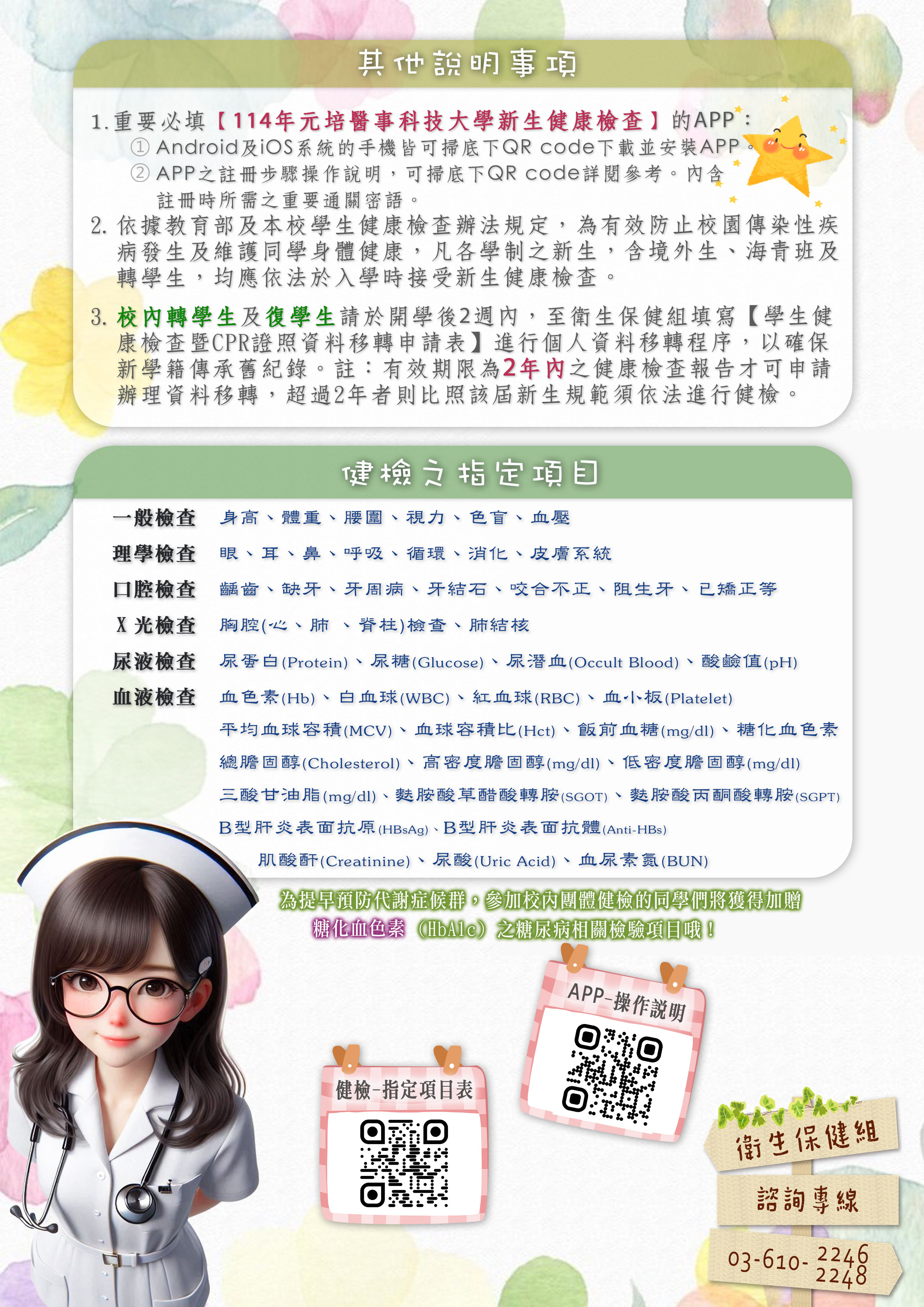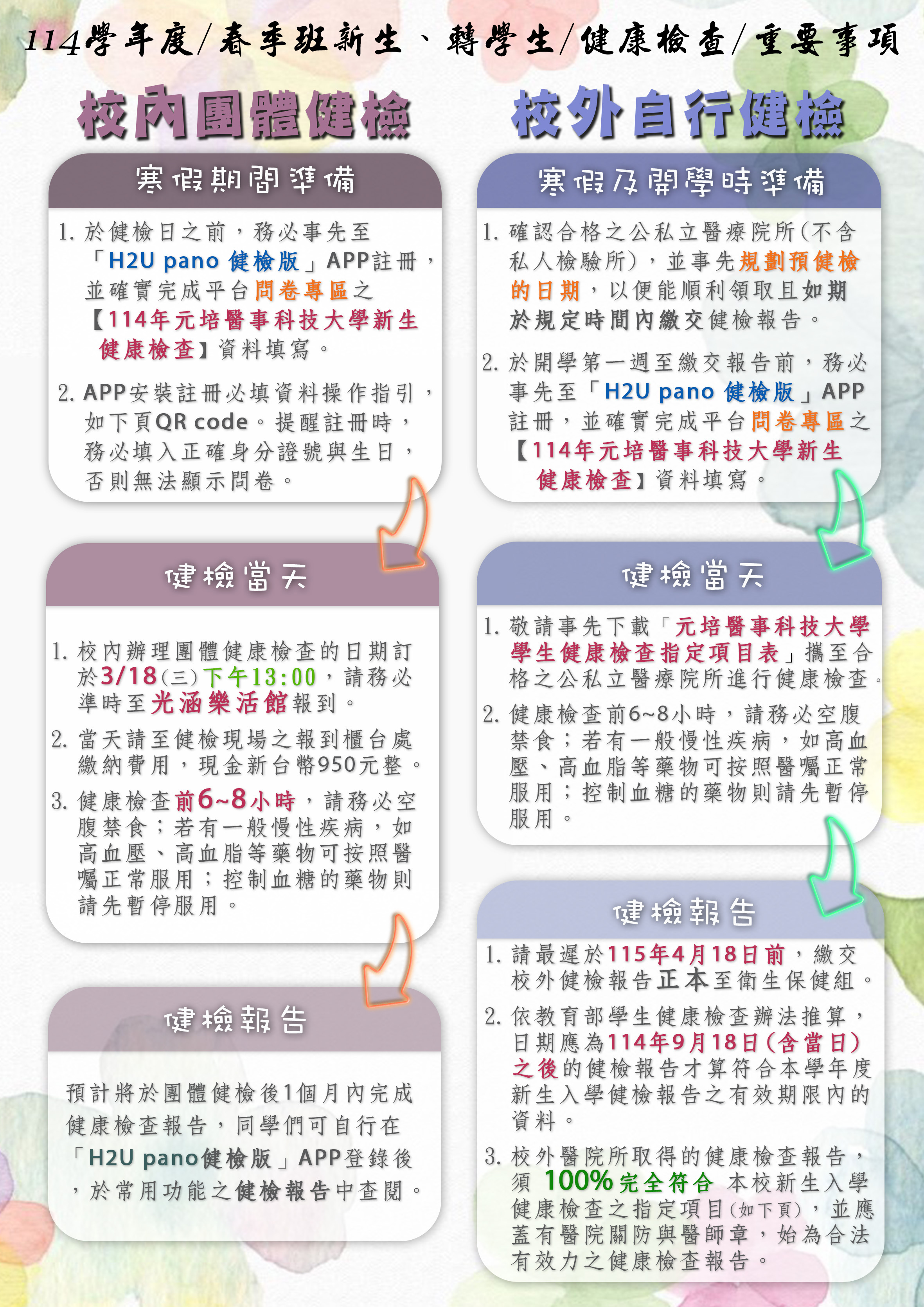 ⭐⭐114學年度 春季班新生、轉學生/健康檢查/重要事項⭐⭐