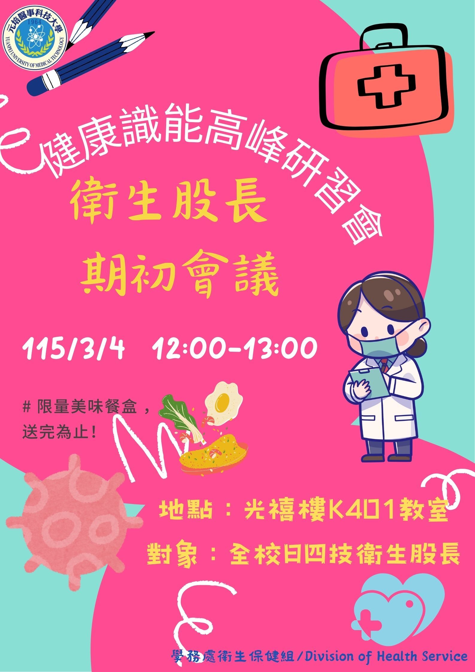 📣對象:日間部四技/衛生股長