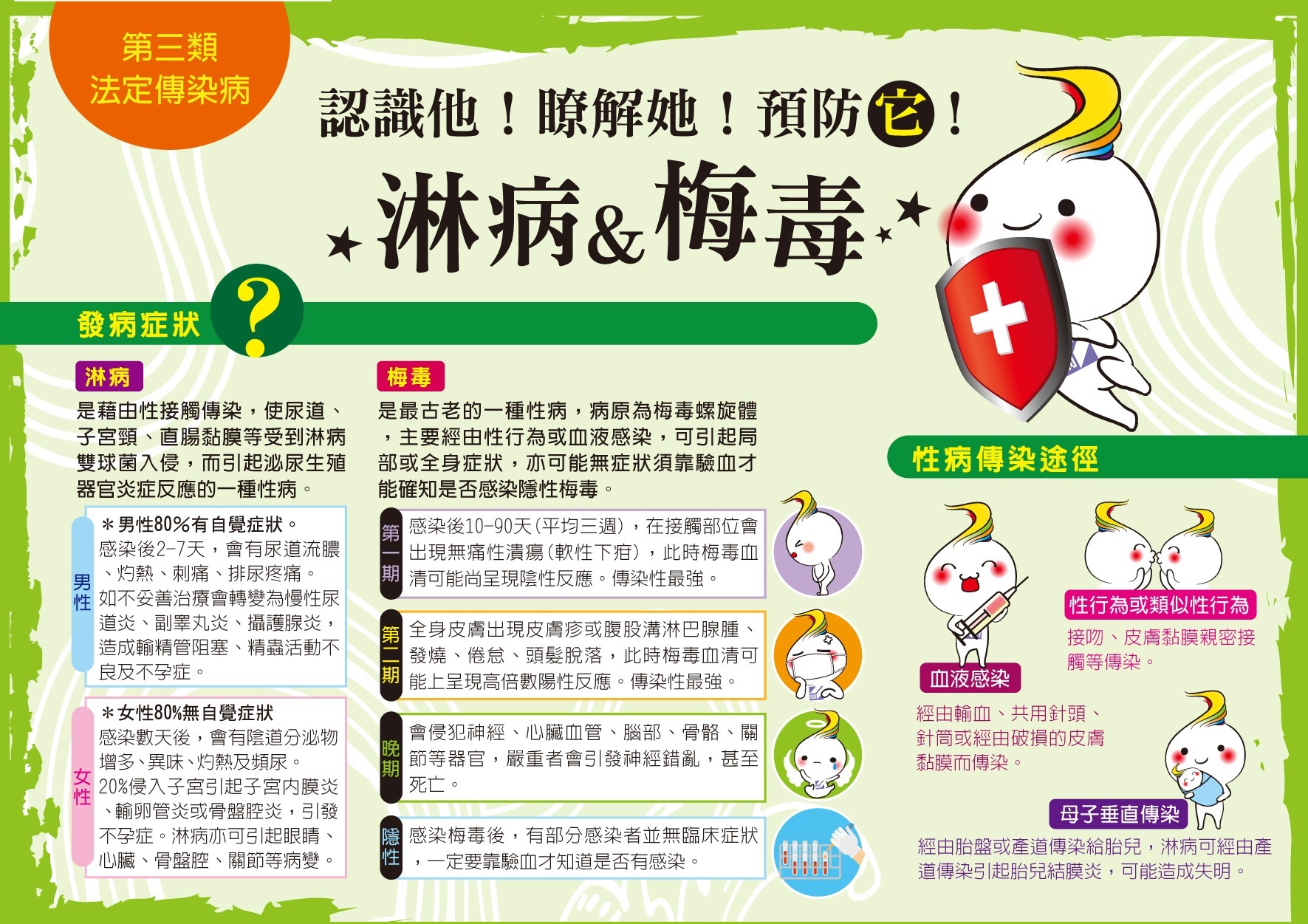 疾管署官網 → 傳染病介紹 → 第三類法定傳染病 → 【梅毒】或【淋病】→「性傳染病衛教資源」
