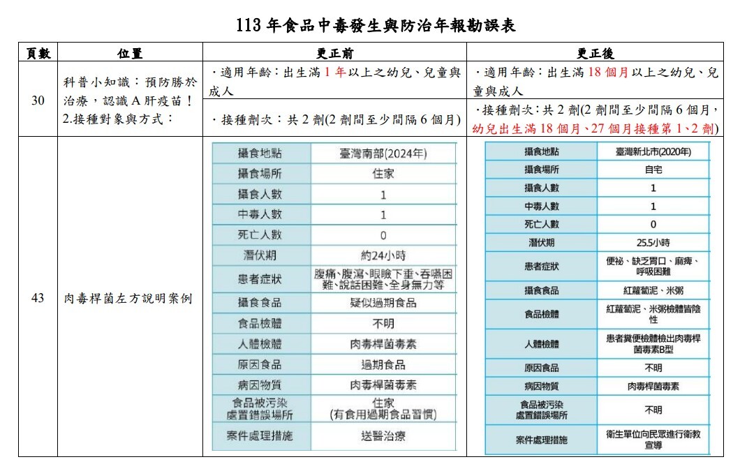 (二)更正第43頁「肉毒桿菌」案例說明內容。